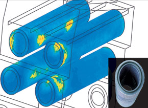 DFO沉流式除塵器獨特的橢圓形濾筒設計,有效提高可處理風量多達25%而沒有增加內部氣流速度,不會導致濾材的磨損。先進的FLUENT®*氣流建模軟件顯示,橢圓形濾筒有較少的高風速區域,減低濾材磨損率,有效延長了濾筒的使用壽命。